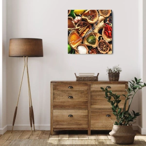Wall clock - Clock on glass - A composition of spices in wooden bowls - 30x30cm - Take What You Want - Modern wall decoration for the living room, kitchen, and bedroom ARTTOR