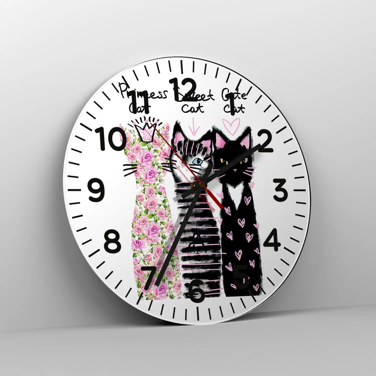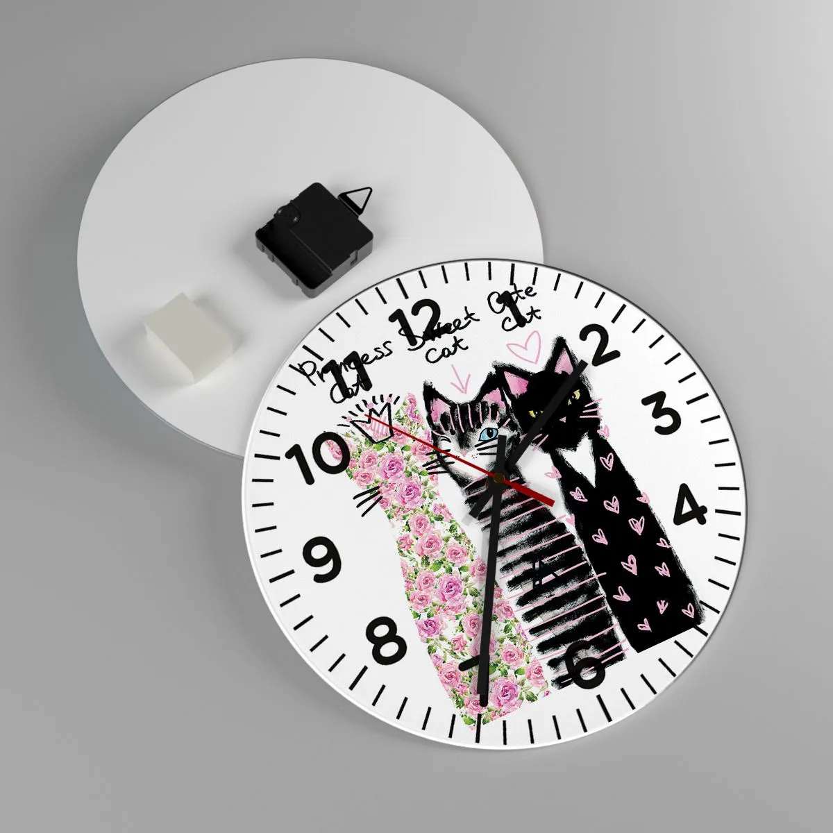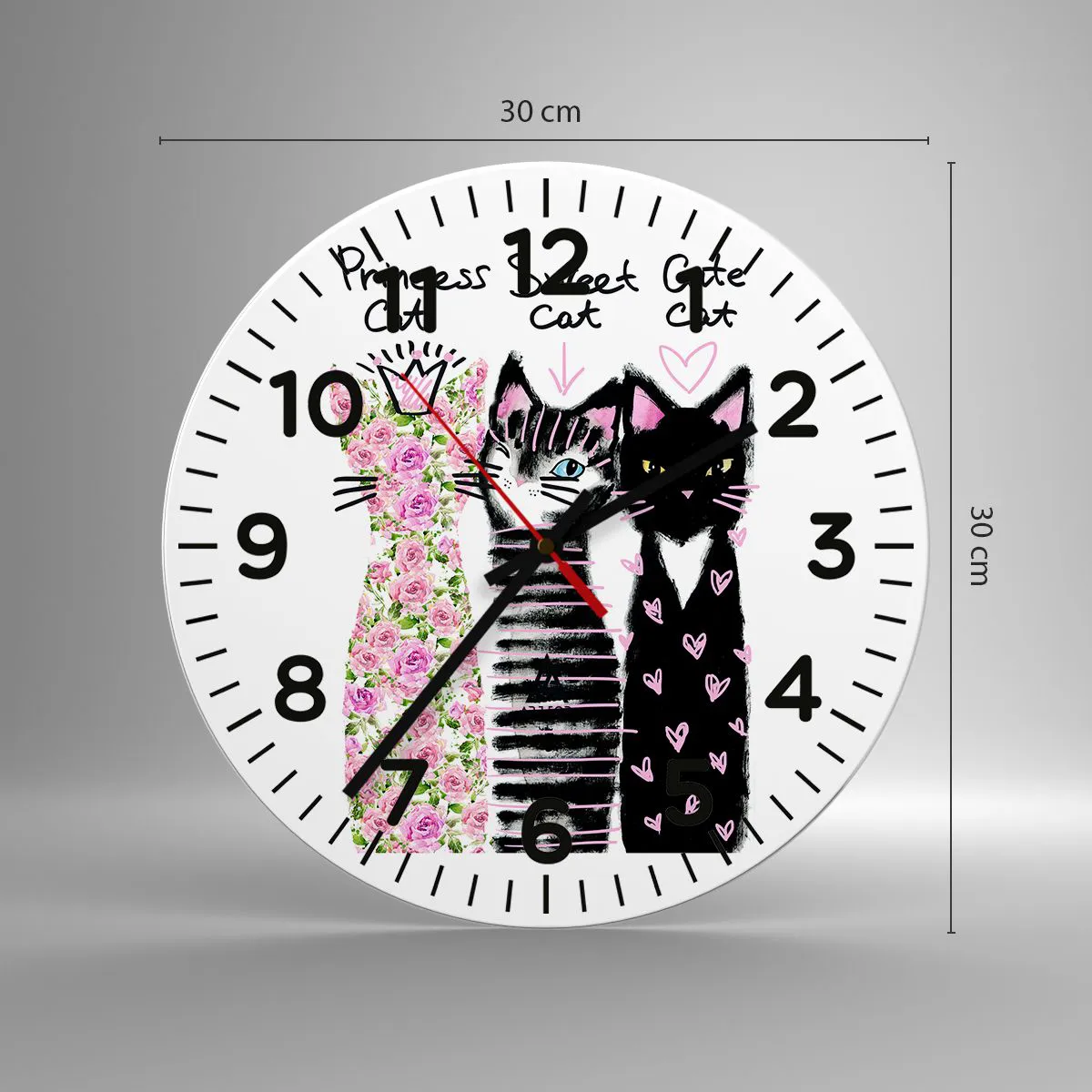 Wall clock - Clock on glass - There Were Three Kittens - 30x30 cm