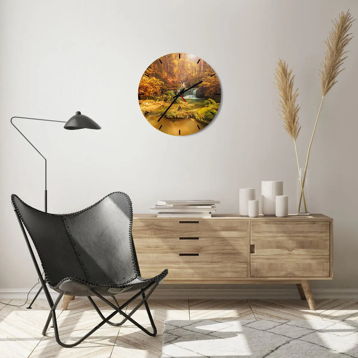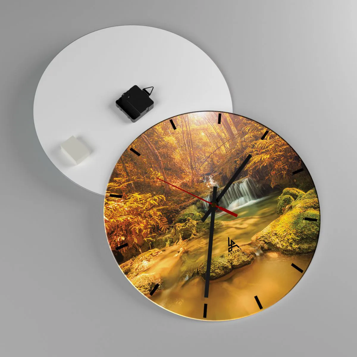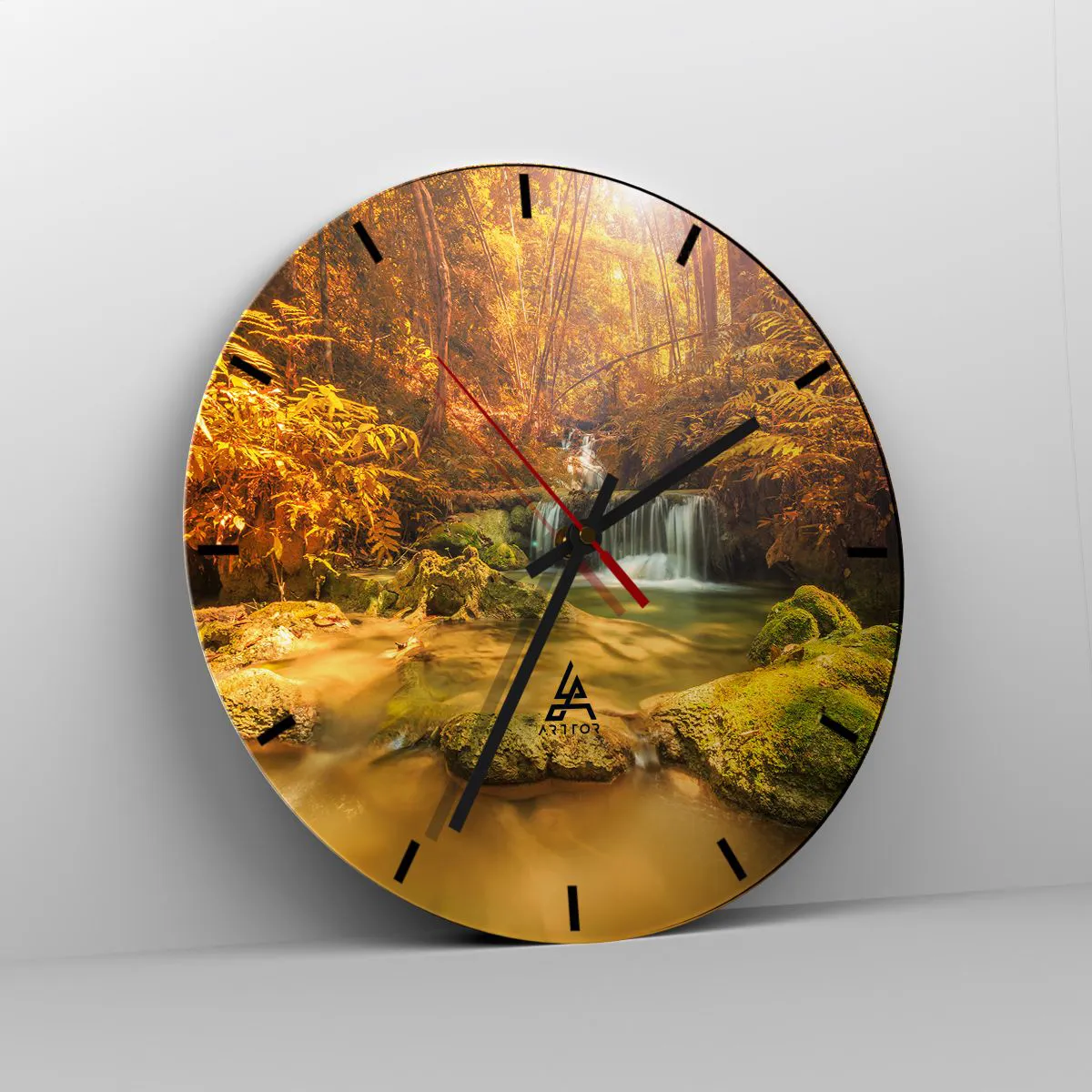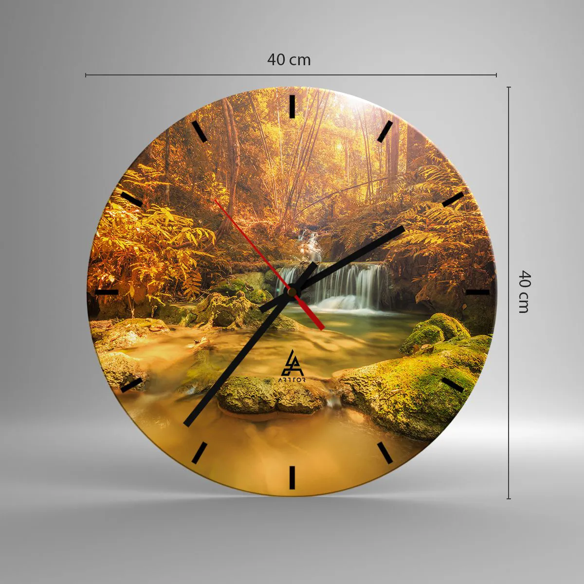 Wall clock - Clock on glass - Forest Cascade in Gold - 40x40 cm