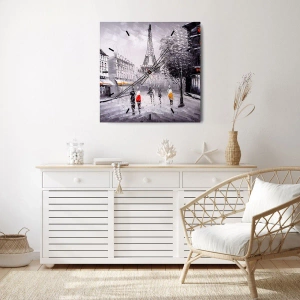 Wall clock - Clock on glass - A street in Paris with the Eiffel Tower in the background - 30x30cm - Parisian Walk - Modern wall decoration for the living room, kitchen, and bedroom ARTTOR