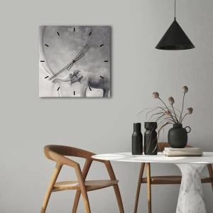 The clock is made of 4mm thick, safe glass. The clock's manufacturing technology complies with safety class 2B2 according to the PN-EN 12600:2004 standard, which guarantees impact resistance. The glass clock is ready to hang - it has a metal hanger attached to the back and a foam pad to regulate the even spacing of the clock from the wall. The clock has a silent mechanism powered by a 1.5V - AA battery (battery is not included).