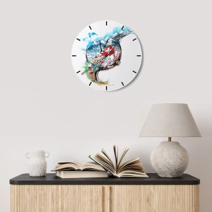 Clock is produced using modern printing technology - this guarantees the preservation of natural colours and high colour saturation. The production of glass clocks is carried out in several stages. A high-quality print and two protective layers are thermally bonded to the glass. We use innovative glass lamination press technology with the vacuum system.