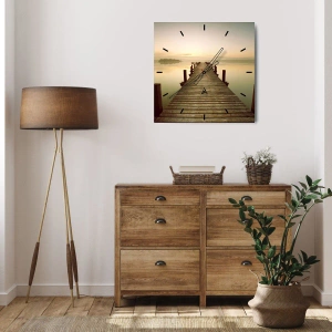 Wall clock - Clock on glass - Before Dawn, Dawn, Light - 30x30 cm