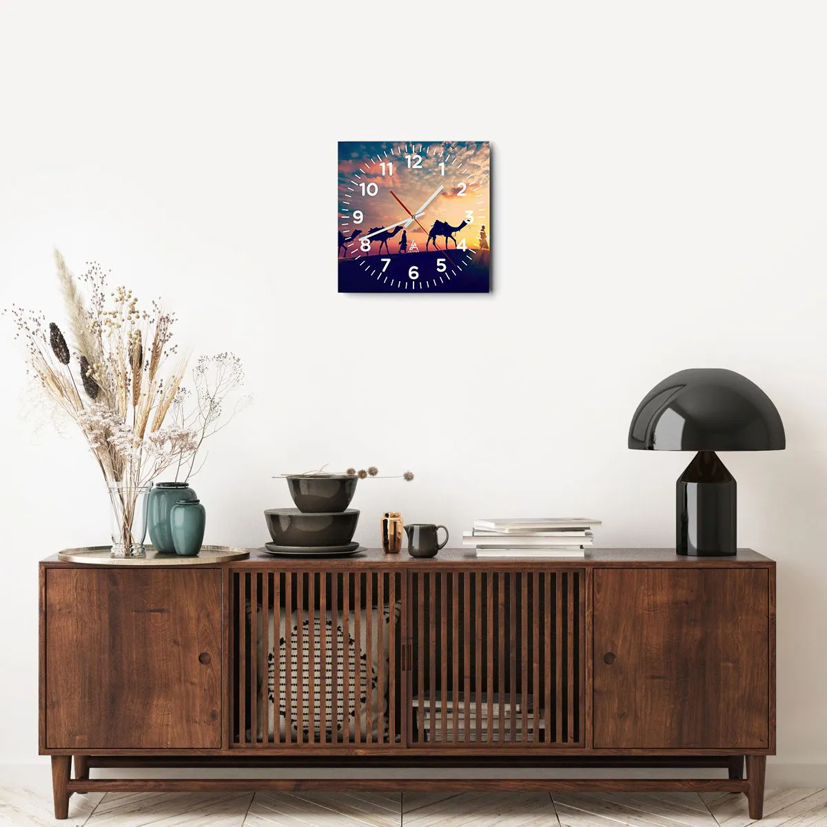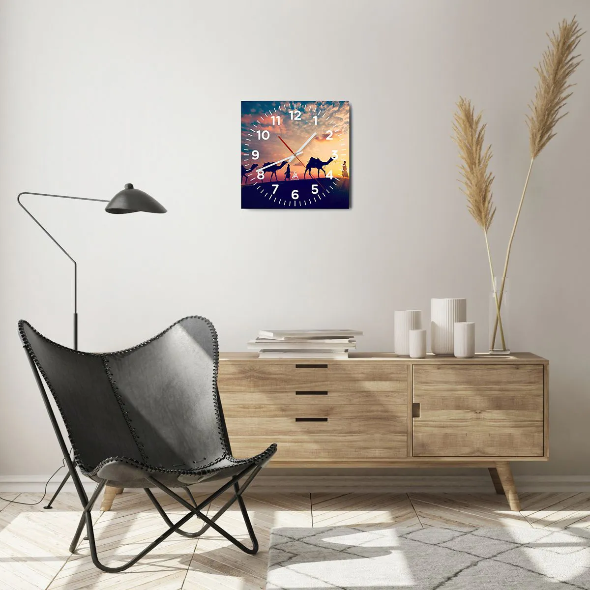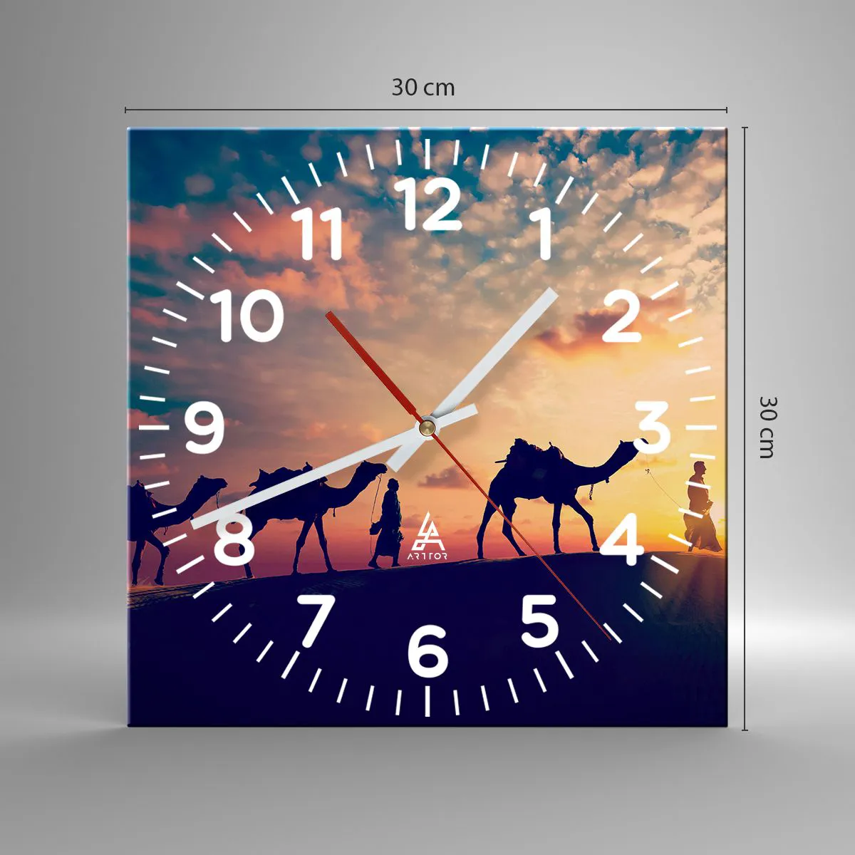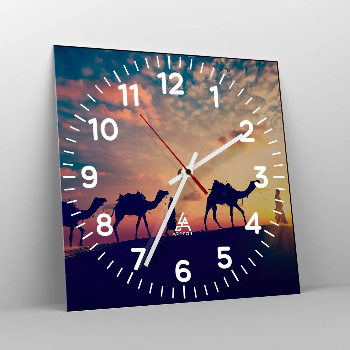 Clock is produced using modern printing technology - this guarantees the preservation of natural colours and high colour saturation. The production of glass clocks is carried out in several stages. A high-quality print and two protective layers are thermally bonded to the glass. We use innovative glass lamination press technology with the vacuum system.
