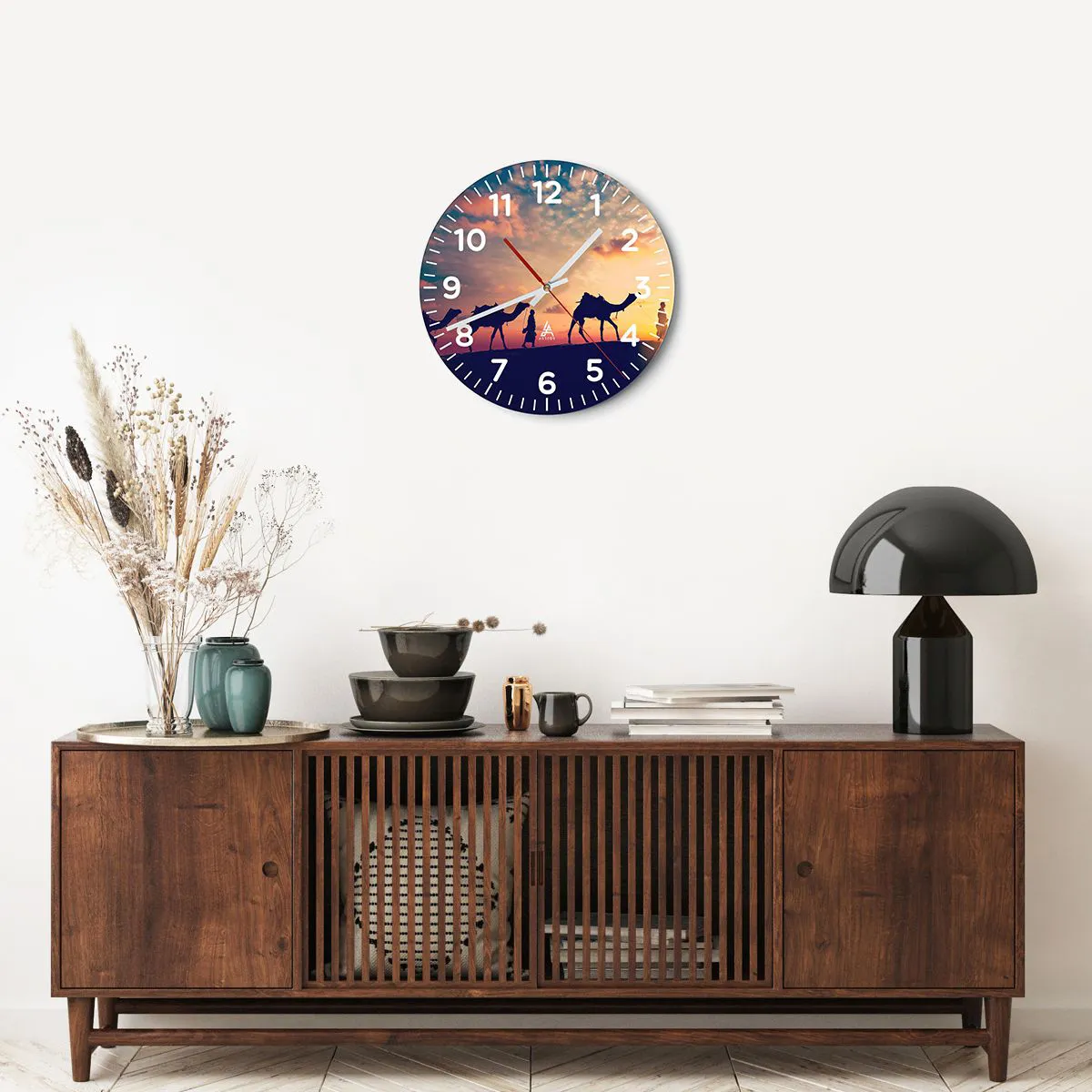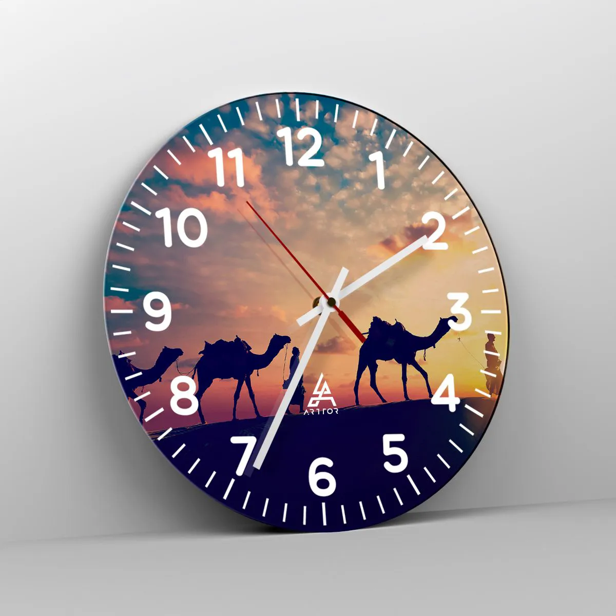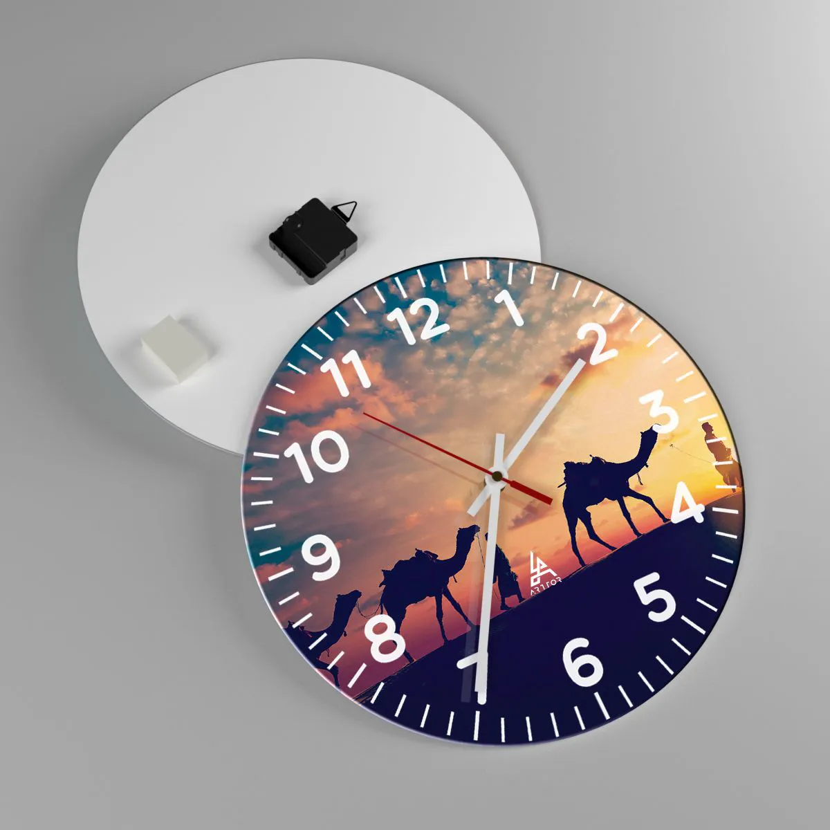 Clock is produced using modern printing technology - this guarantees the preservation of natural colours and high colour saturation. The production of glass clocks is carried out in several stages. A high-quality print and two protective layers are thermally bonded to the glass. We use innovative glass lamination press technology with the vacuum system.