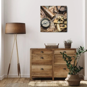 The "Set Your Course" wall clock is a unique piece of decoration that combines the elegance of vintage style with a navigation motif. It features a navigation set consisting of a map, compass, and sextant, giving it a unique character and making it a perfect addition to any interior.
