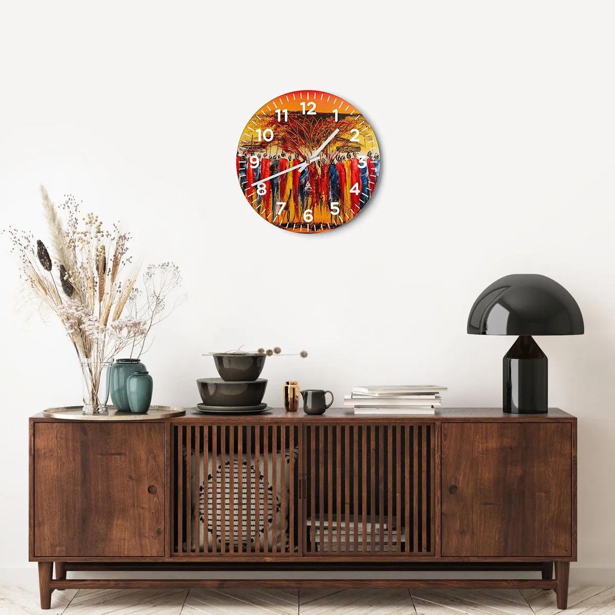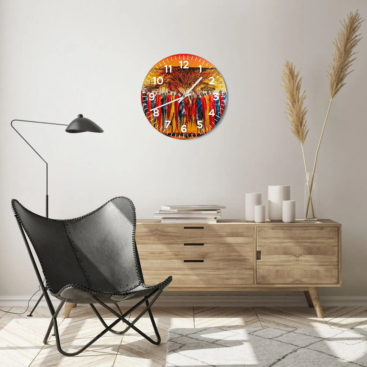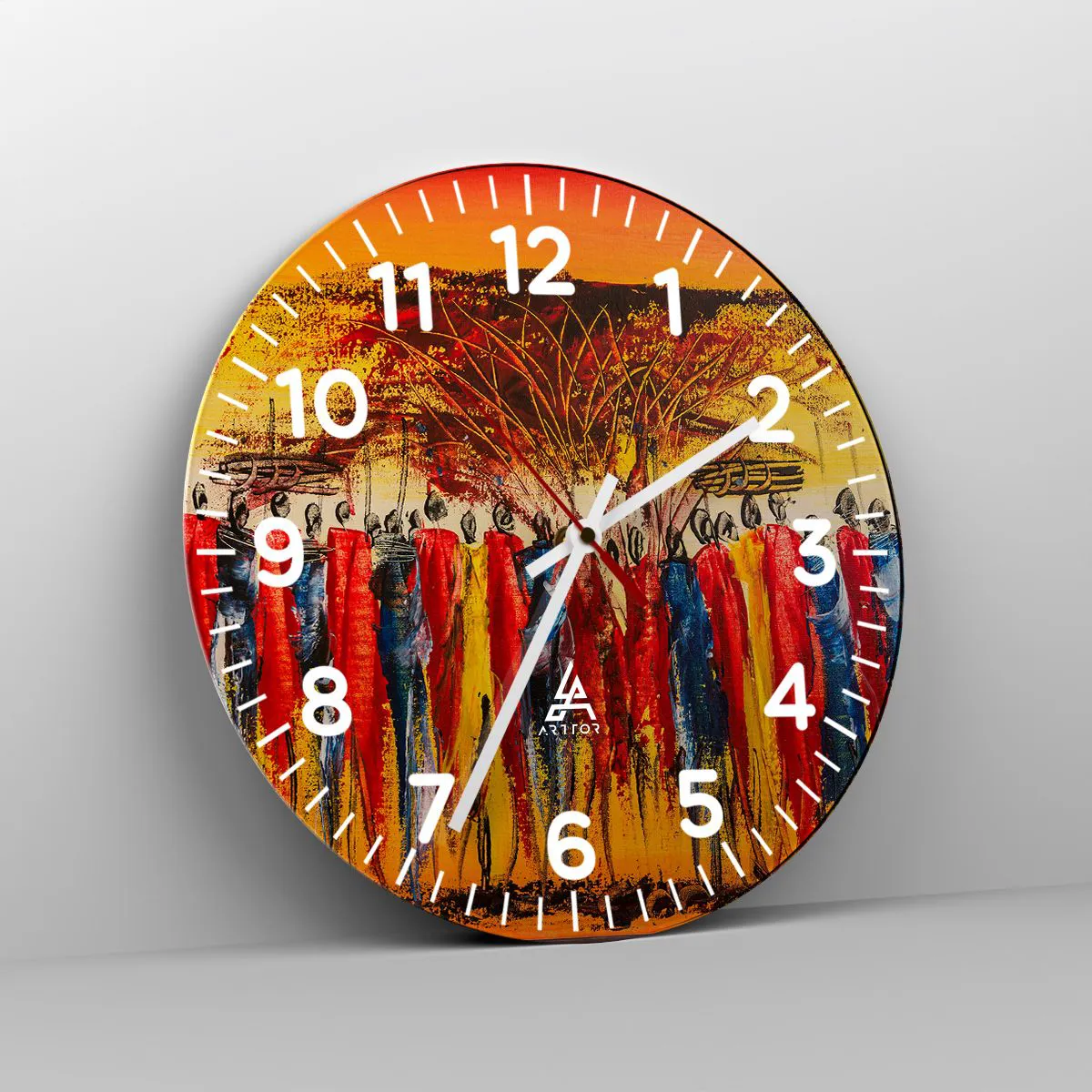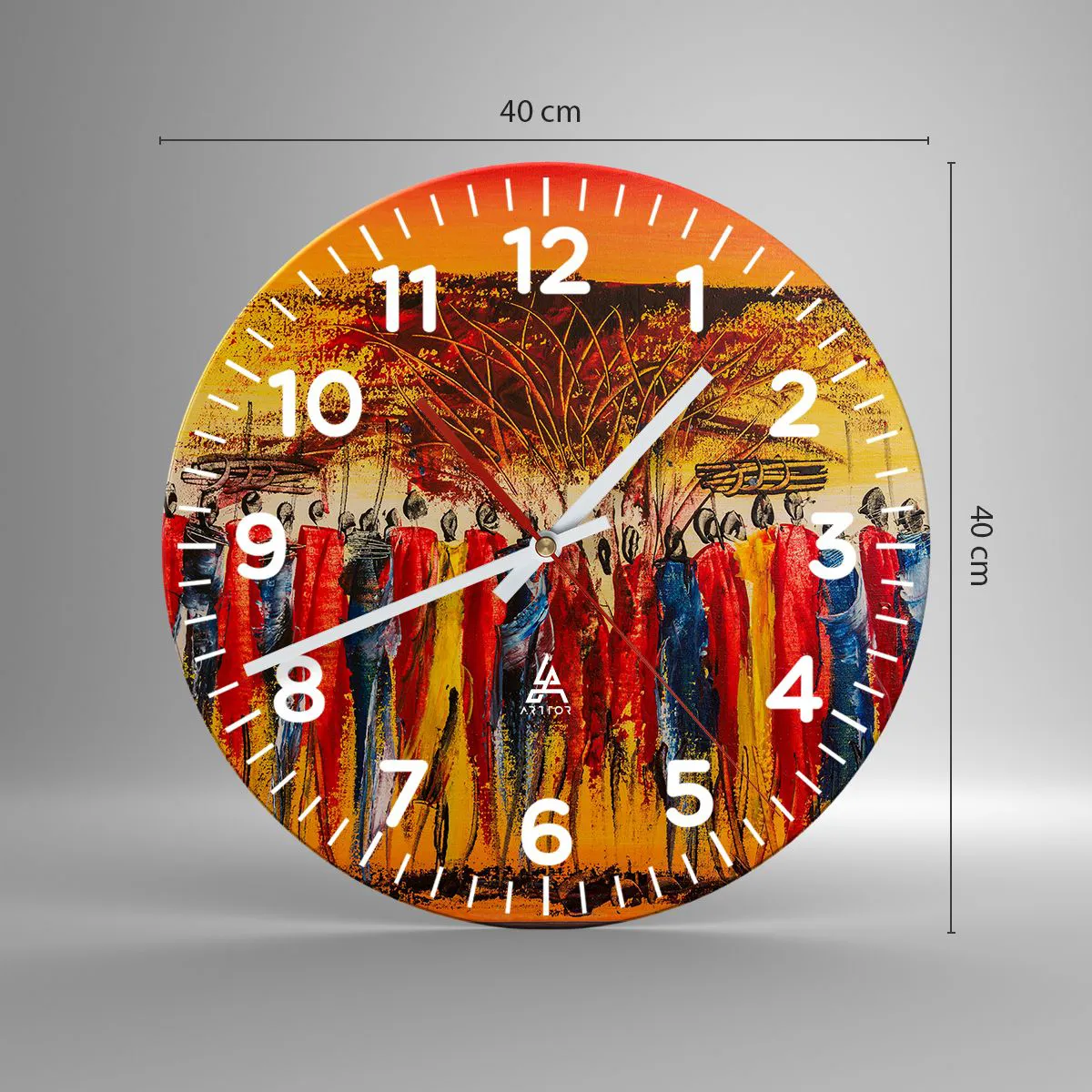 Wall clock - Clock on glass - Marching in the Rhythm of Tam-tam - 40x40 cm