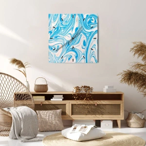 Wall clock - Clock on glass - An abstract pool in shades of turquoise and white - 30x30cm - Floodplain in Turquoise - Modern wall decoration for the living room, kitchen, and bedroom ARTTOR