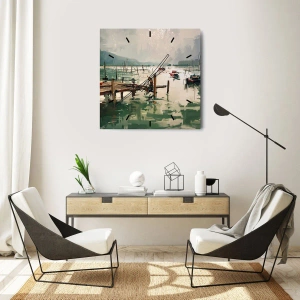 Clock is produced using modern printing technology - this guarantees the preservation of natural colours and high colour saturation. The production of glass clocks is carried out in several stages. A high-quality print and two protective layers are thermally bonded to the glass. We use innovative glass lamination press technology with the vacuum system.