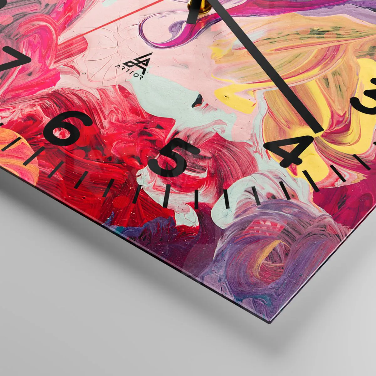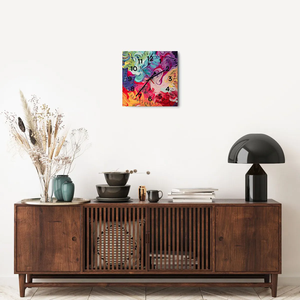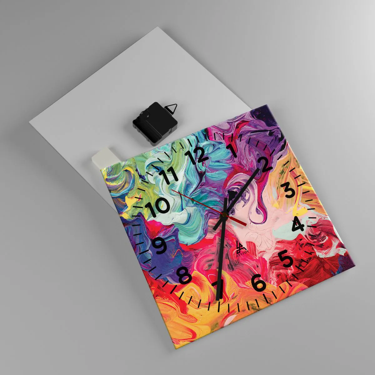 Wall clock - Clock on glass - Birth of Colours - 30x30 cm