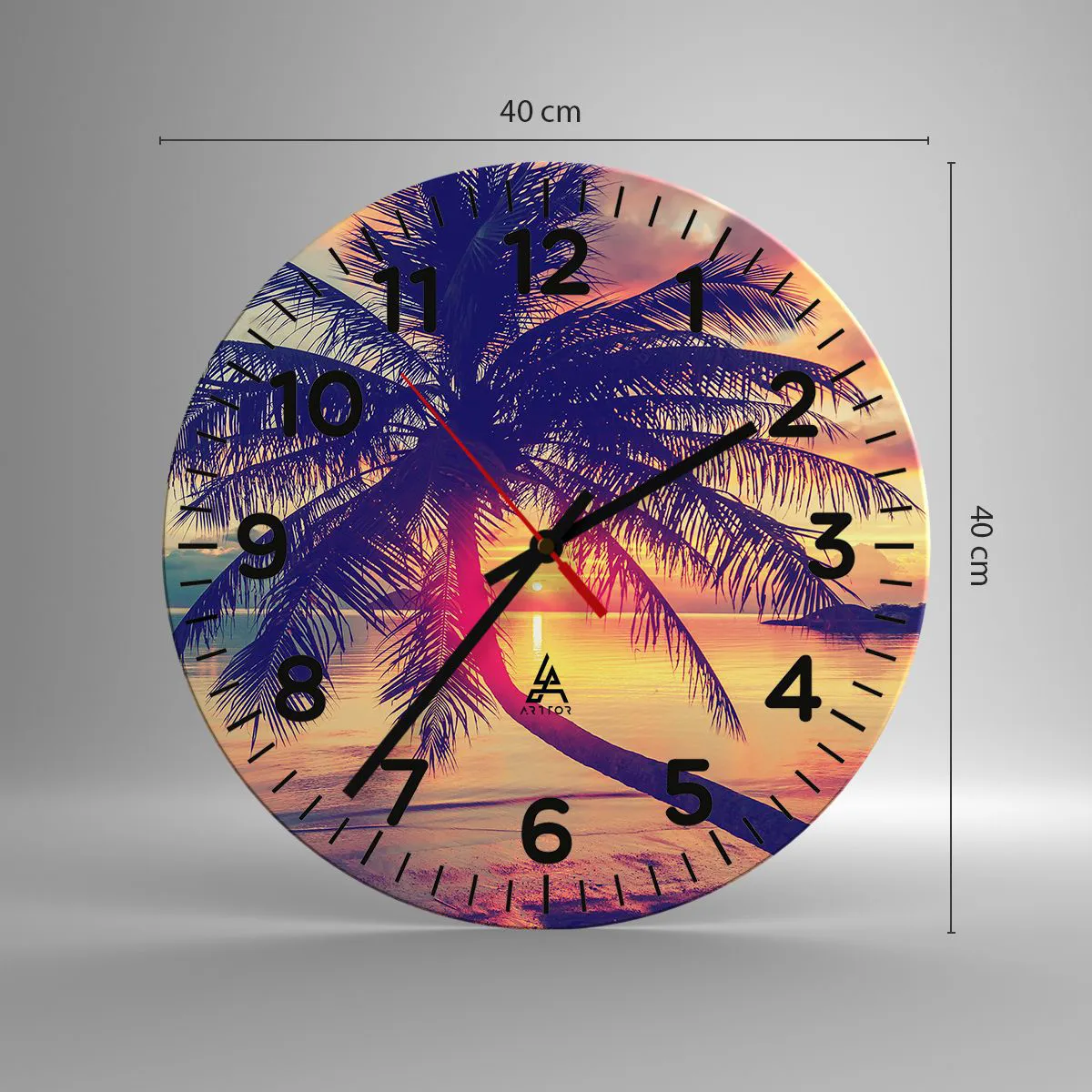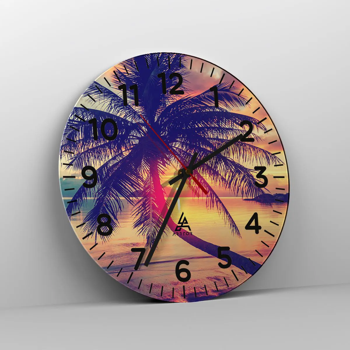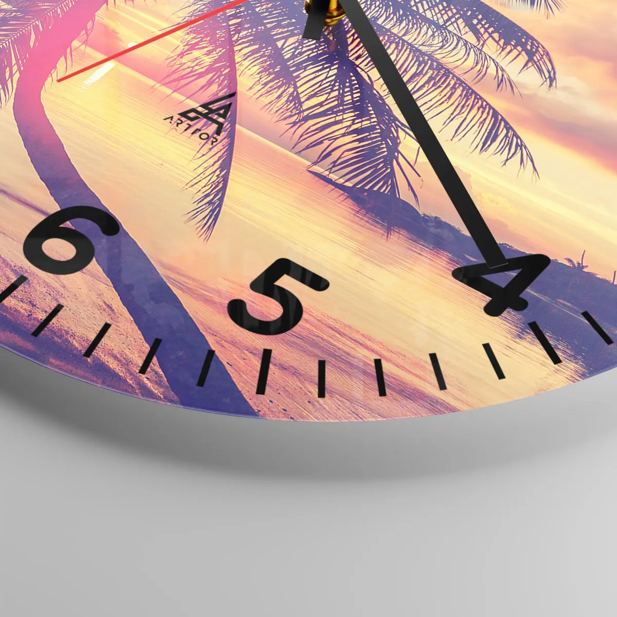 Wall clock - Clock on glass - Evening under the Palm Trees - 40x40 cm