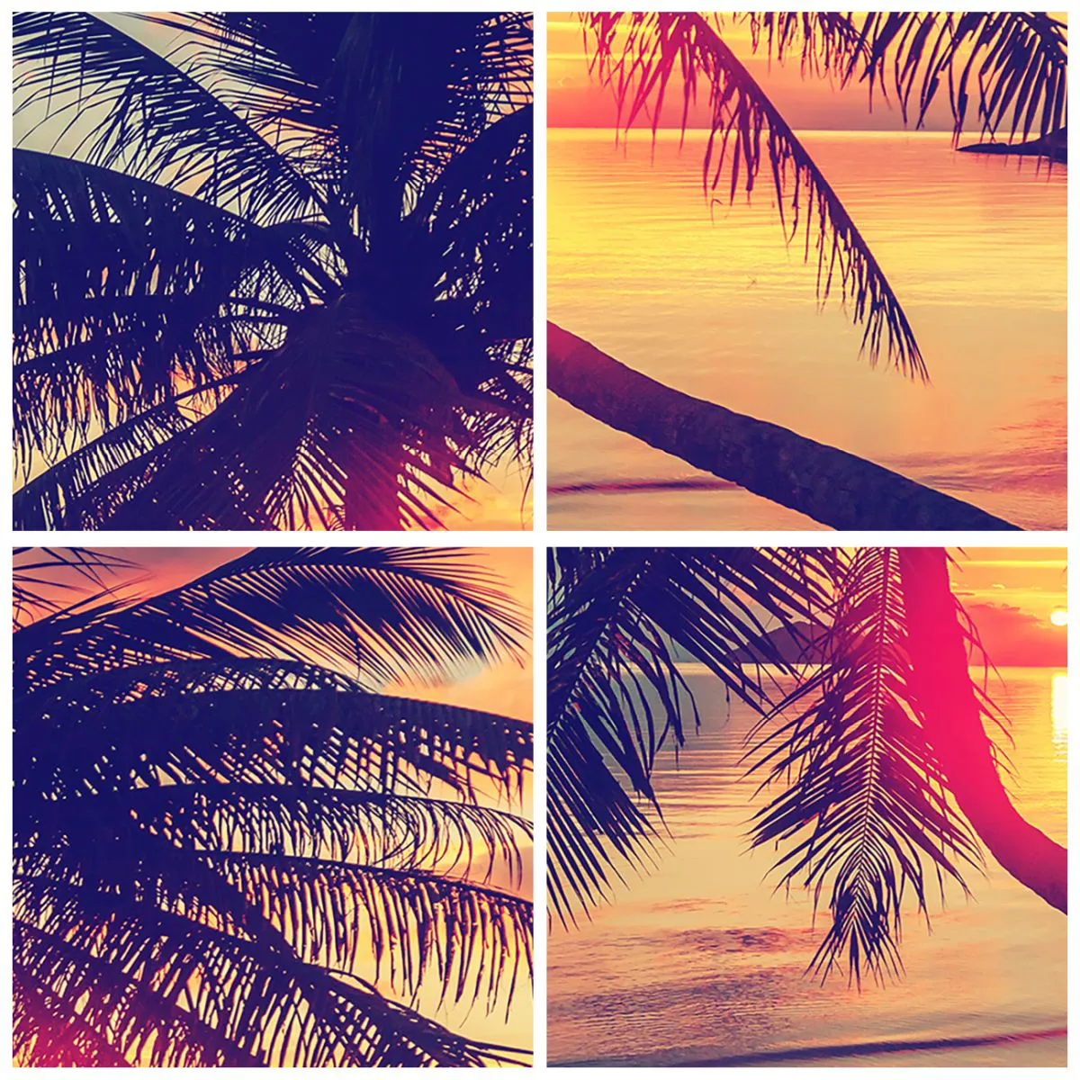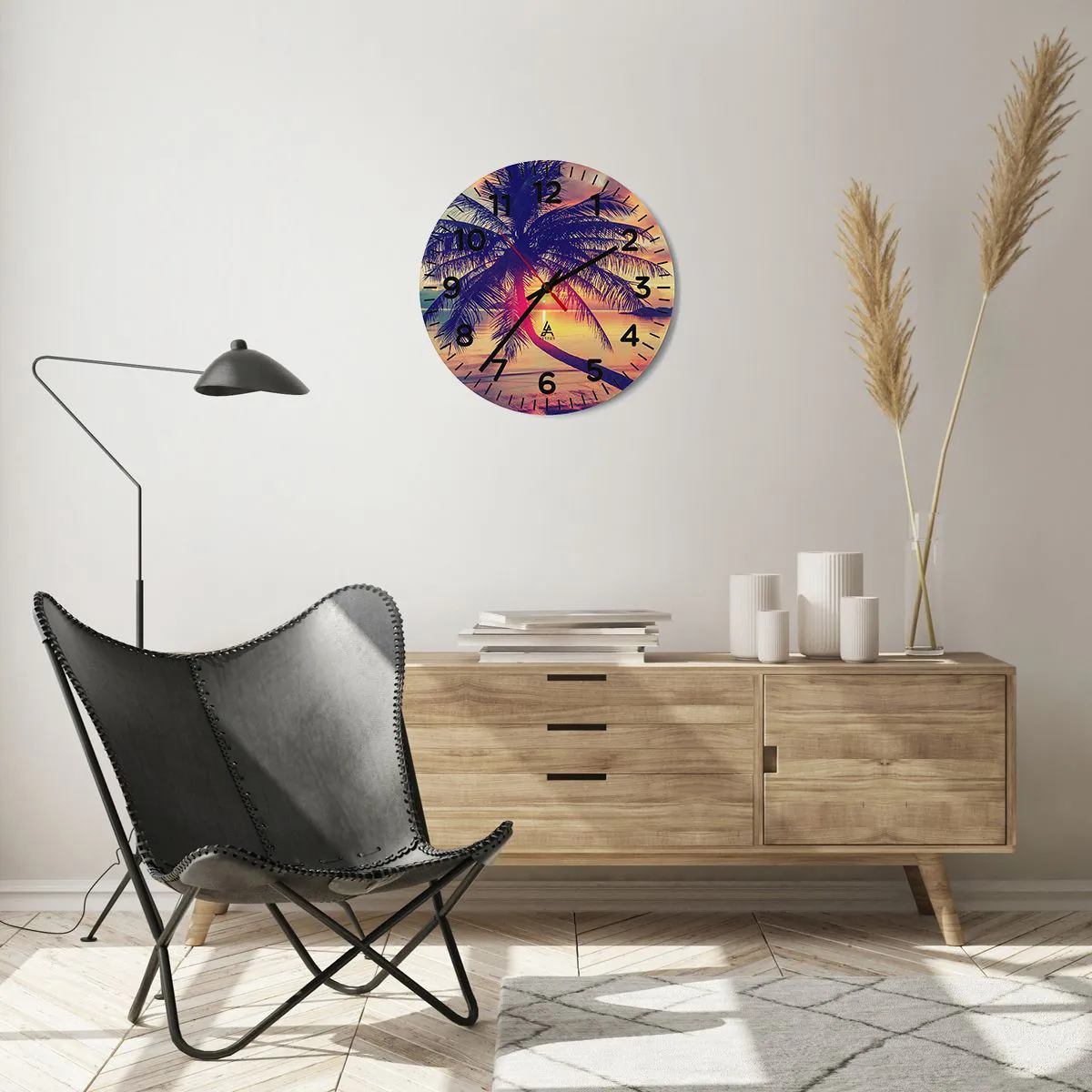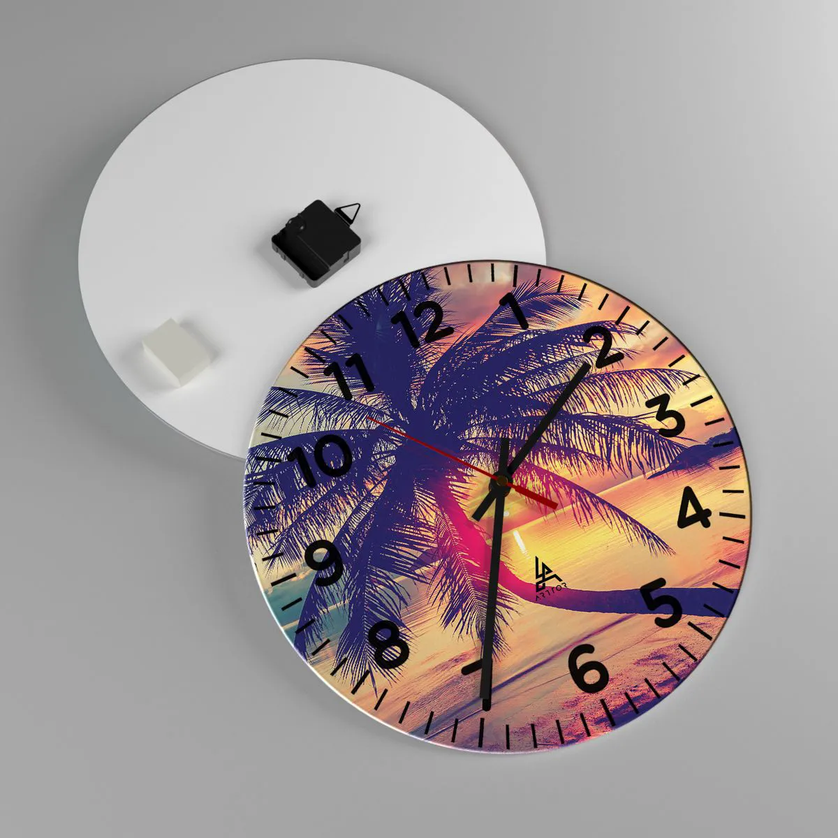 Wall clock - Clock on glass - Evening under the Palm Trees - 40x40 cm
