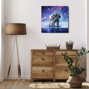 The "Starry Sky Above Me" wall clock is a unique decorative element that transports us to the mysterious world of space. The clock face depicts an astronaut in full equipment, against the background of an intensely colorful galaxy with twinkling stars.