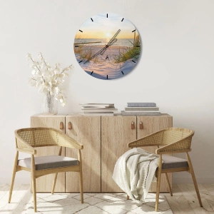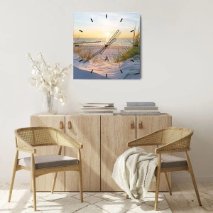 Wall clock - Clock on glass - Sound of the Sea, Singing of the Birds, Wild Beach among Grass - 30x30 cm