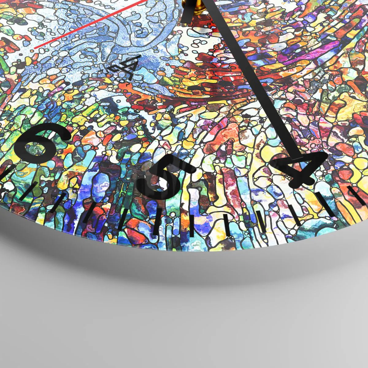 Clock is produced using modern printing technology - this guarantees the preservation of natural colours and high colour saturation. The production of glass clocks is carried out in several stages. A high-quality print and two protective layers are thermally bonded to the glass. We use innovative glass lamination press technology with the vacuum system.