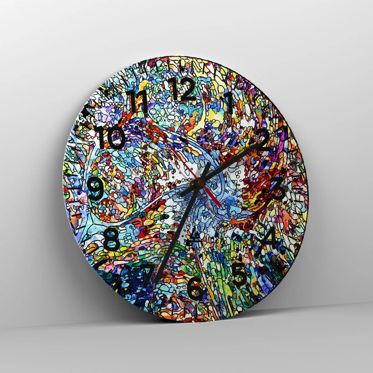 Wall clock - Clock on glass - Stained Glass with Drops - 40x40 cm