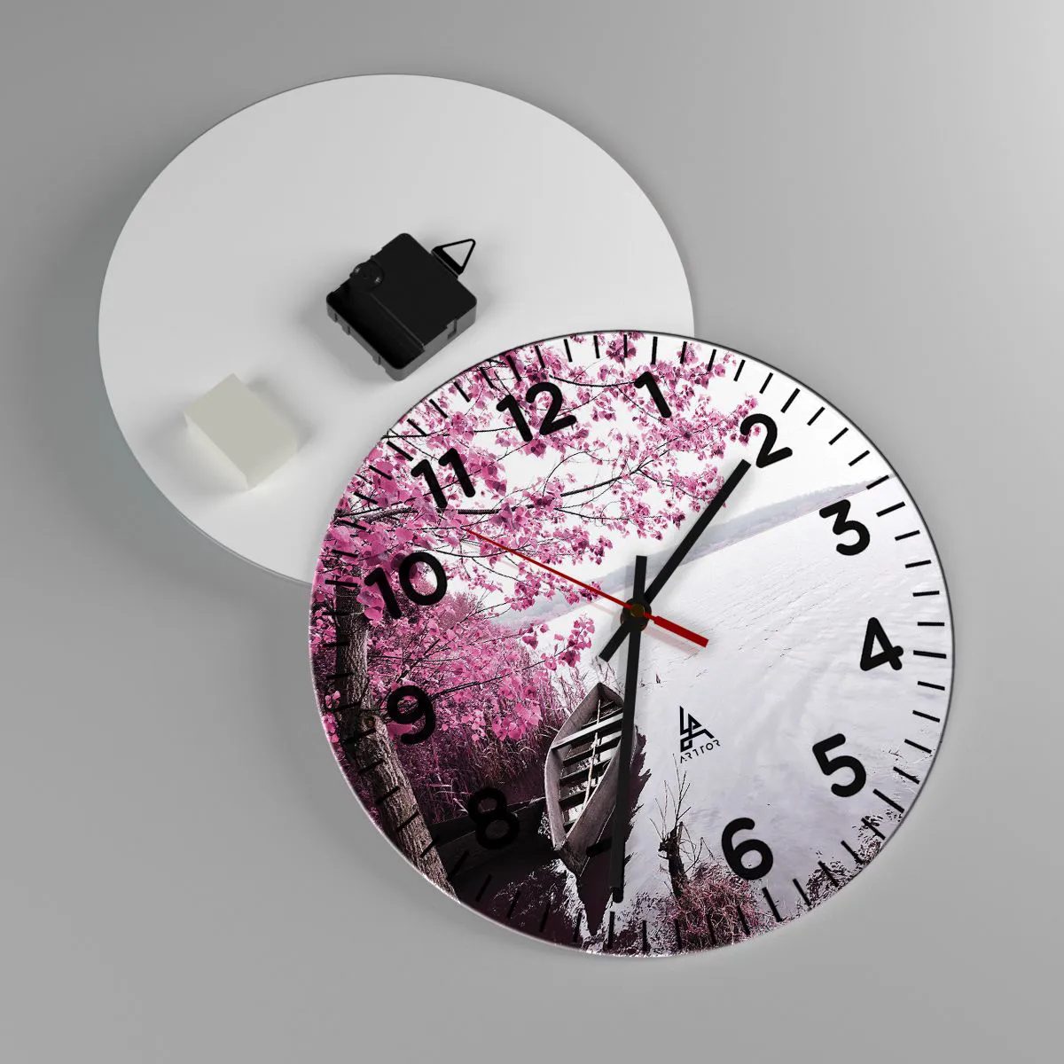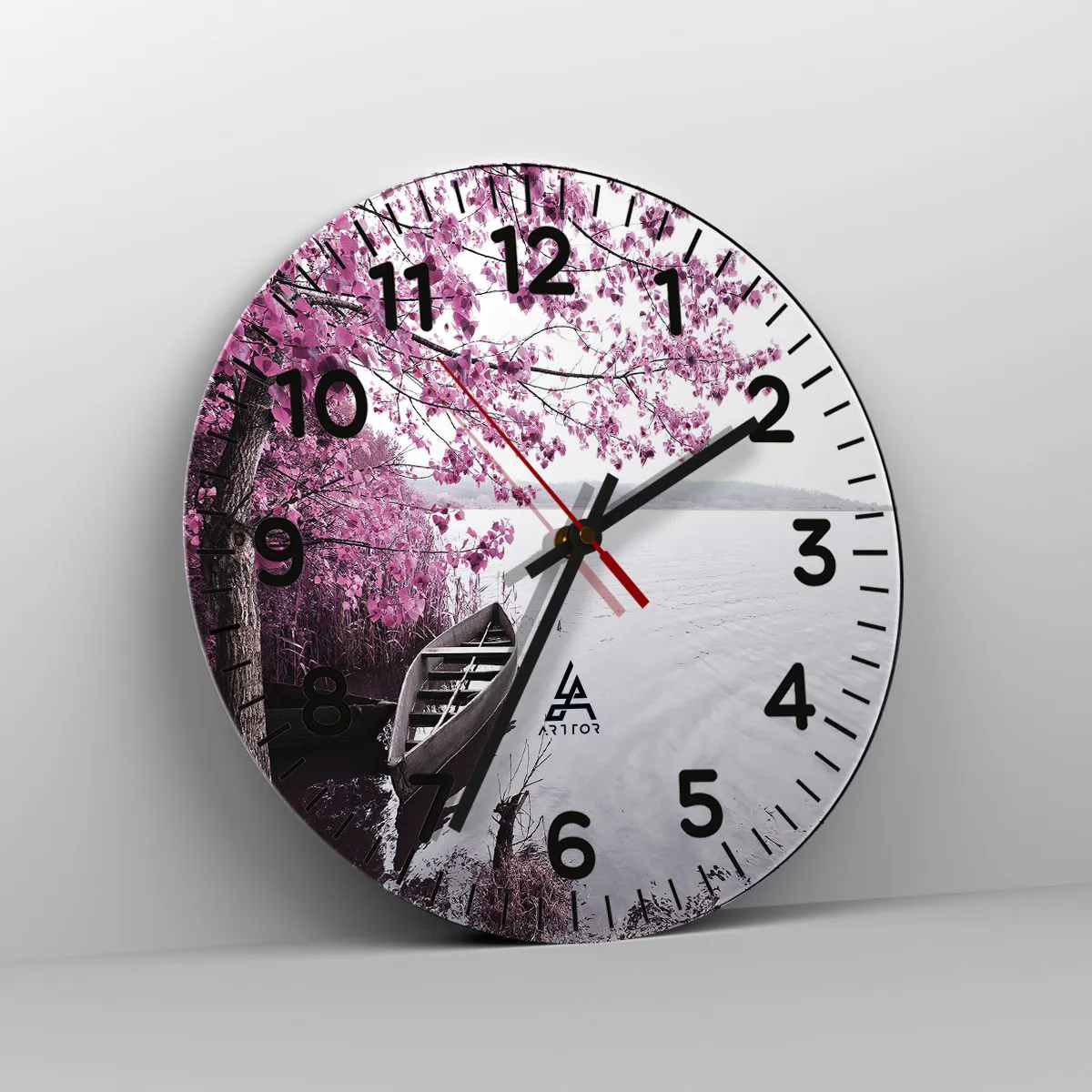 Wall clock - Clock on glass - In Pink Silence - 30x30 cm
