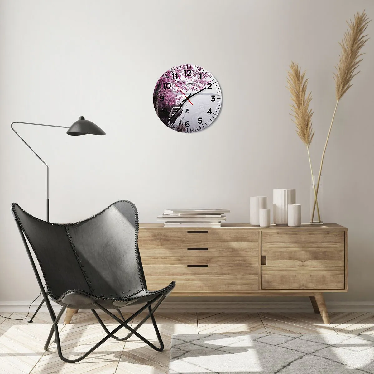The clock is made of 4mm thick, safe glass. The clock's manufacturing technology complies with safety class 2B2 according to the PN-EN 12600:2004 standard, which guarantees impact resistance. The glass clock is ready to hang - it has a metal hanger attached to the back and a foam pad to regulate the even spacing of the clock from the wall. The clock has a silent mechanism powered by a 1.5V - AA battery (battery is not included).