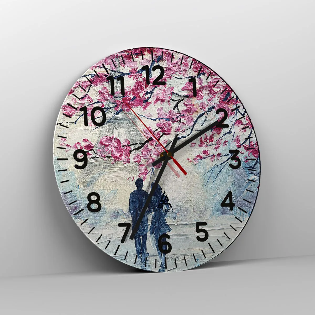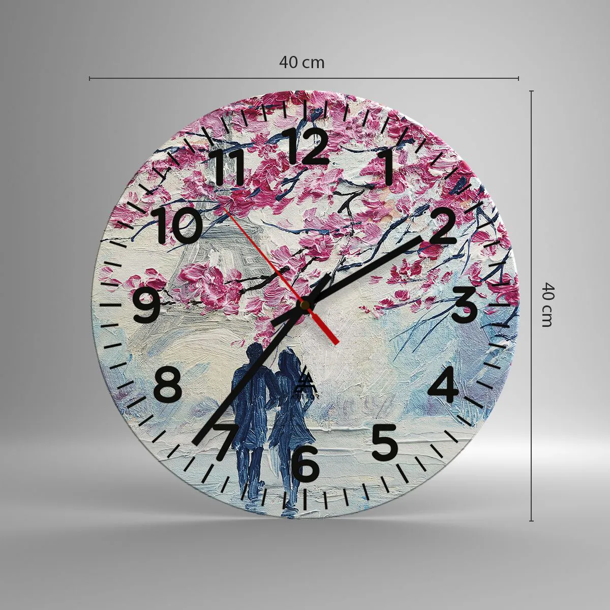 Wall clock - Clock on glass - Romantic Walk - 40x40 cm