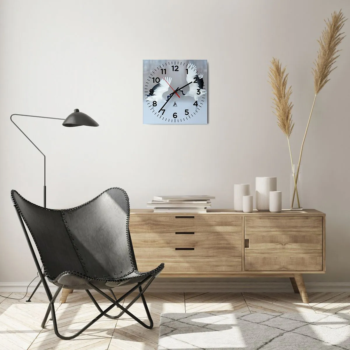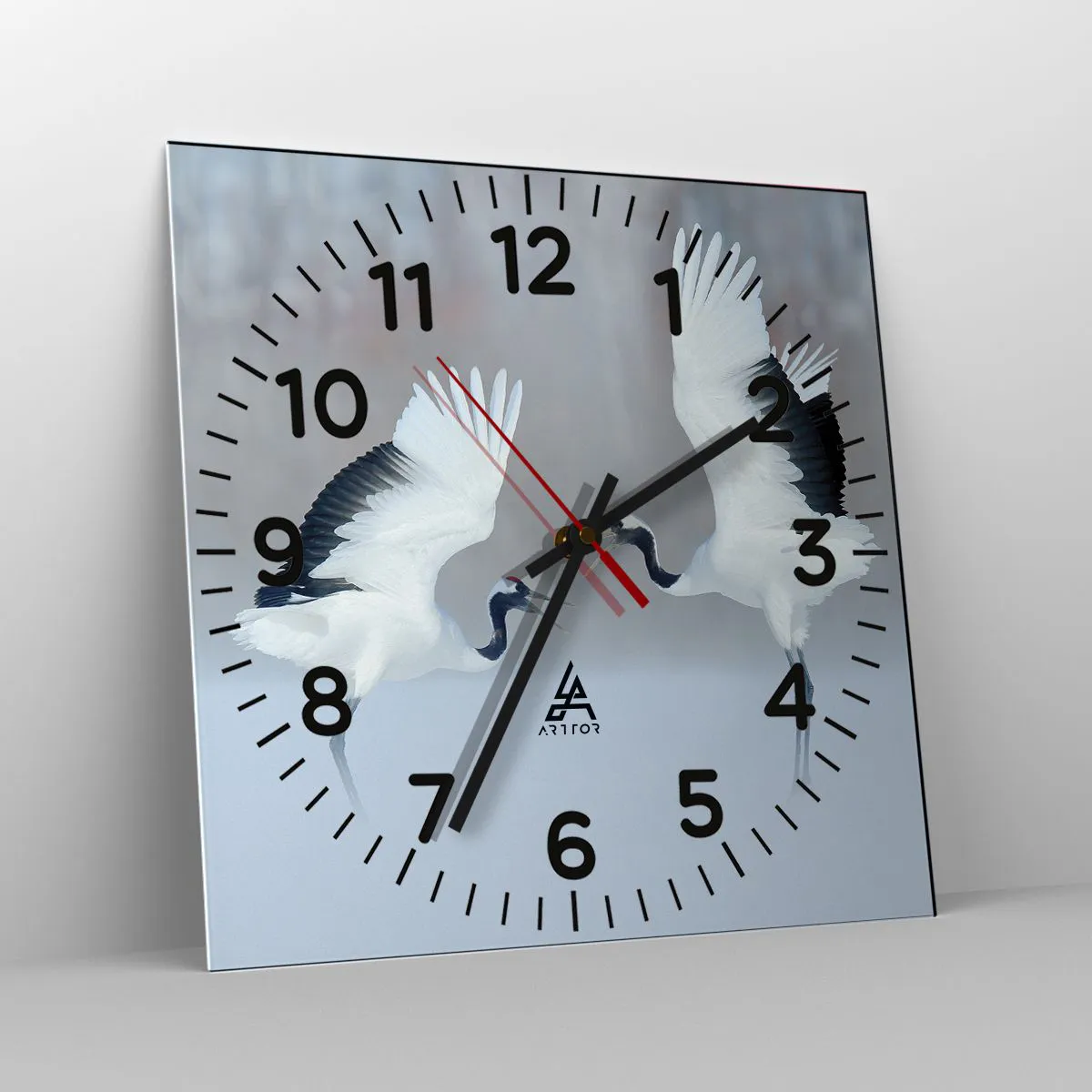 Clock is produced using modern printing technology - this guarantees the preservation of natural colours and high colour saturation. The production of glass clocks is carried out in several stages. A high-quality print and two protective layers are thermally bonded to the glass. We use innovative glass lamination press technology with the vacuum system.