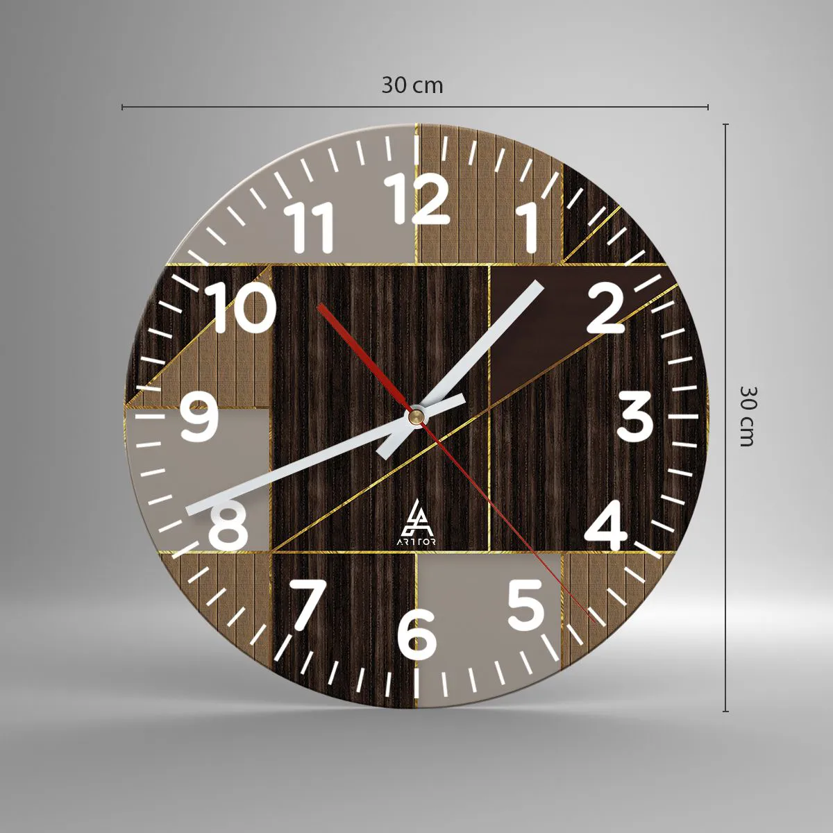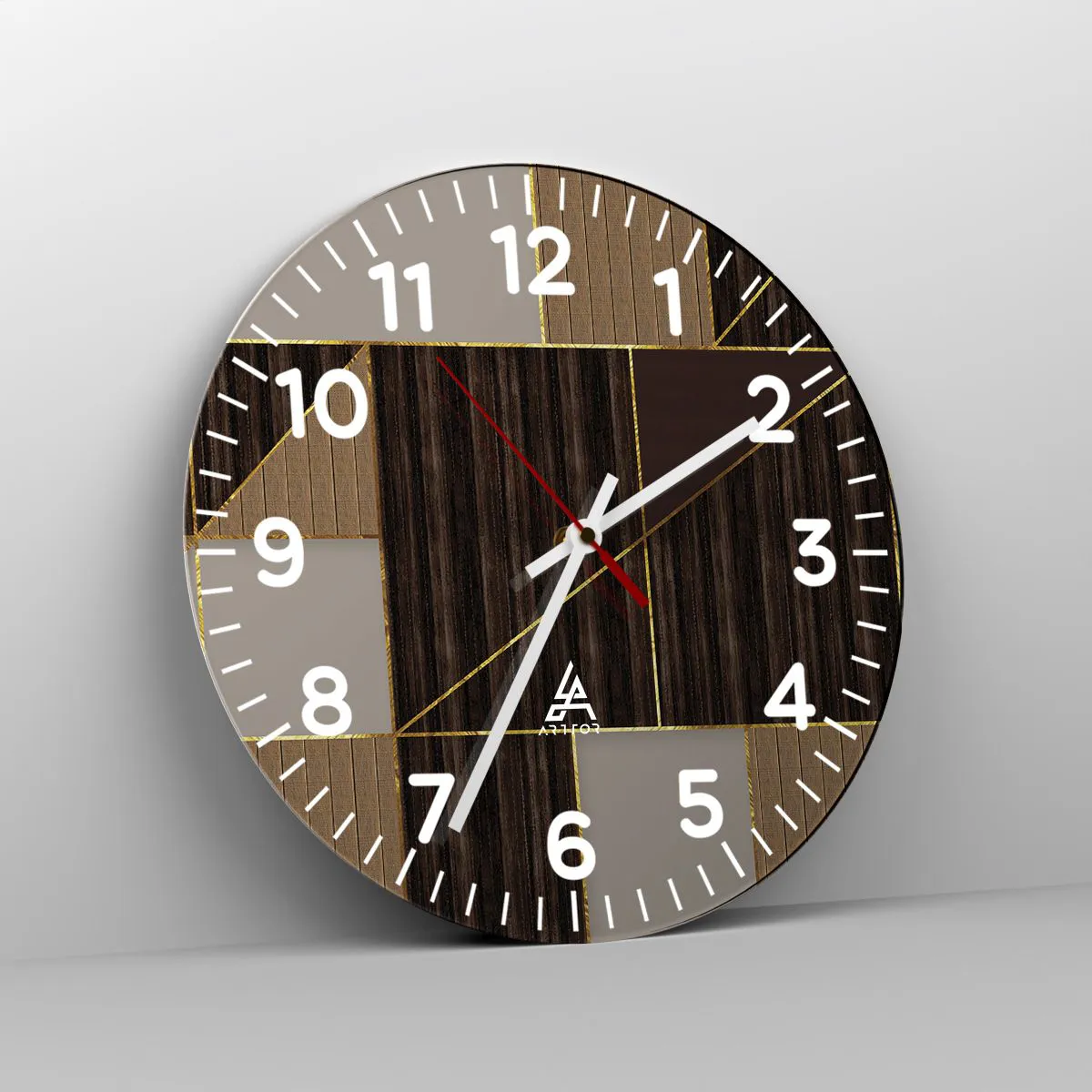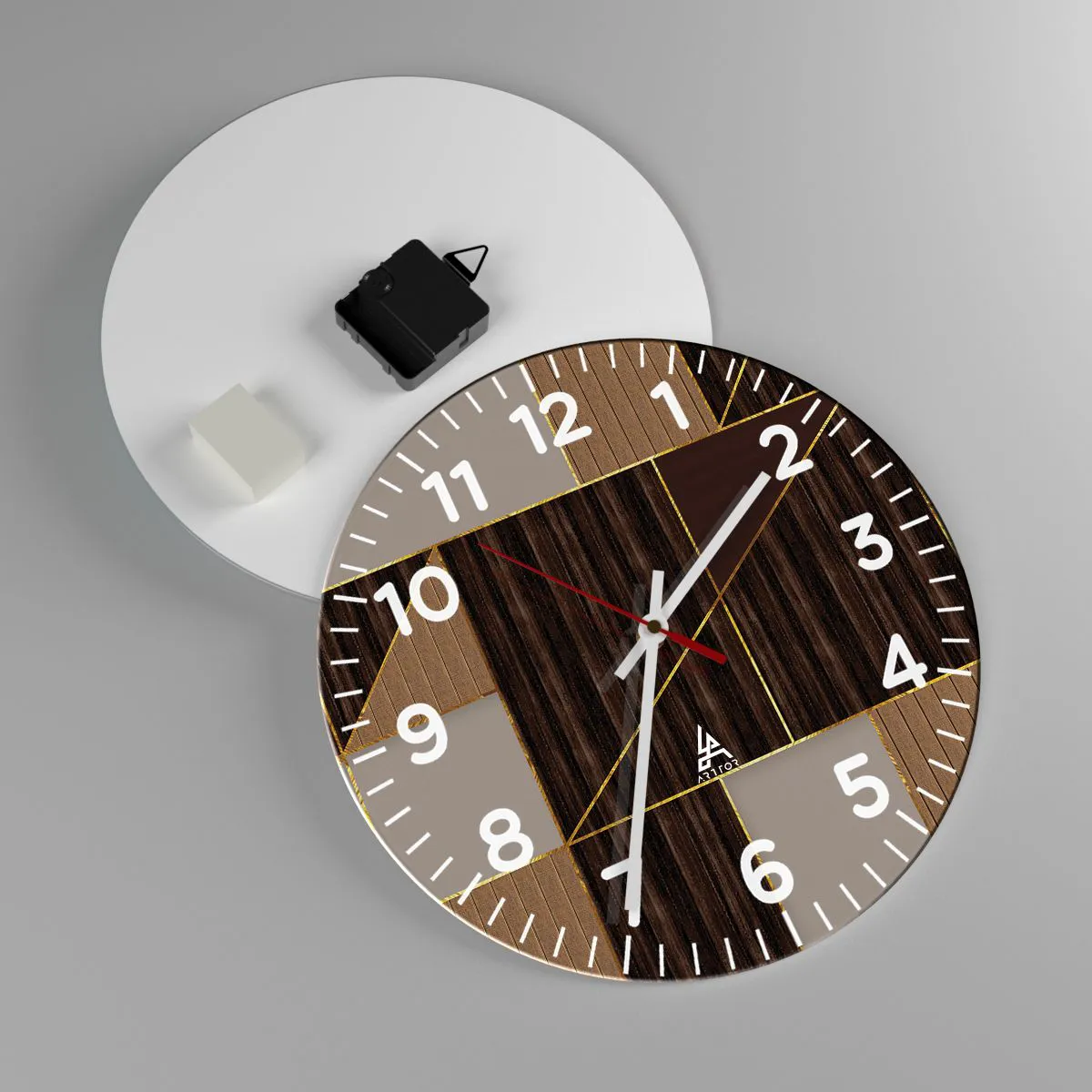 Wall clock - Clock on glass - Mosaic of Brown and Gold - 30x30 cm