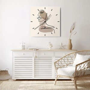 Wall clock - Clock on glass - Listening to Herself - 40x40 cm