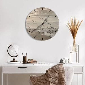 Wall clock - Clock on glass - Sound of the Sea, Singing of the Birds - 30x30 cm