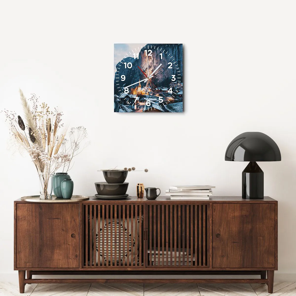 Clock is produced using modern printing technology - this guarantees the preservation of natural colours and high colour saturation. The production of glass clocks is carried out in several stages. A high-quality print and two protective layers are thermally bonded to the glass. We use innovative glass lamination press technology with the vacuum system.
