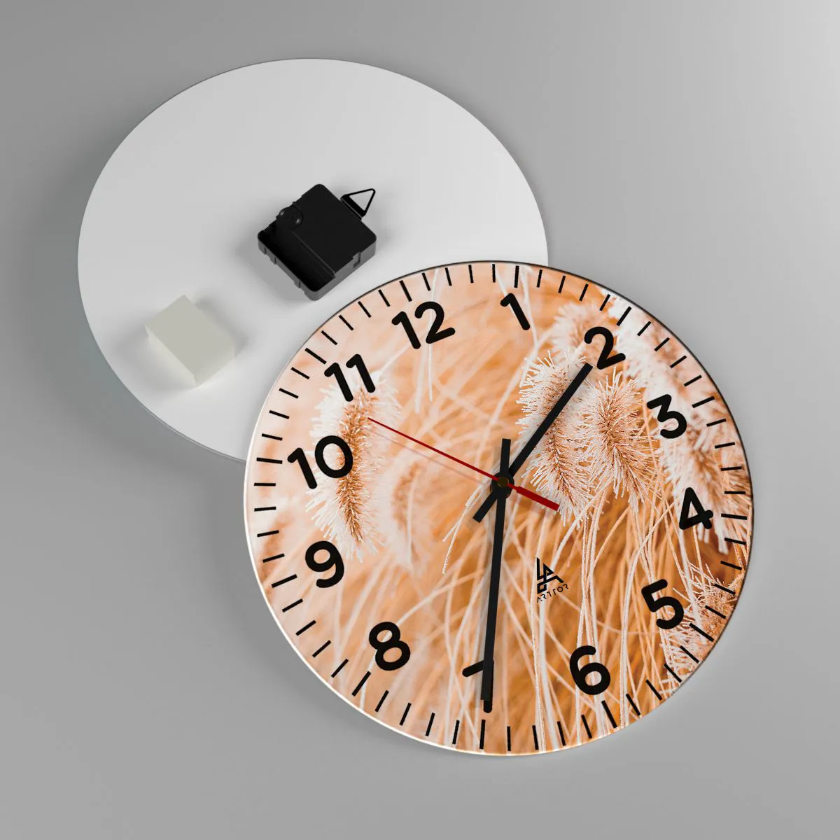 Wall clock - Clock on glass - Golden Rustling of Grass - 30x30 cm