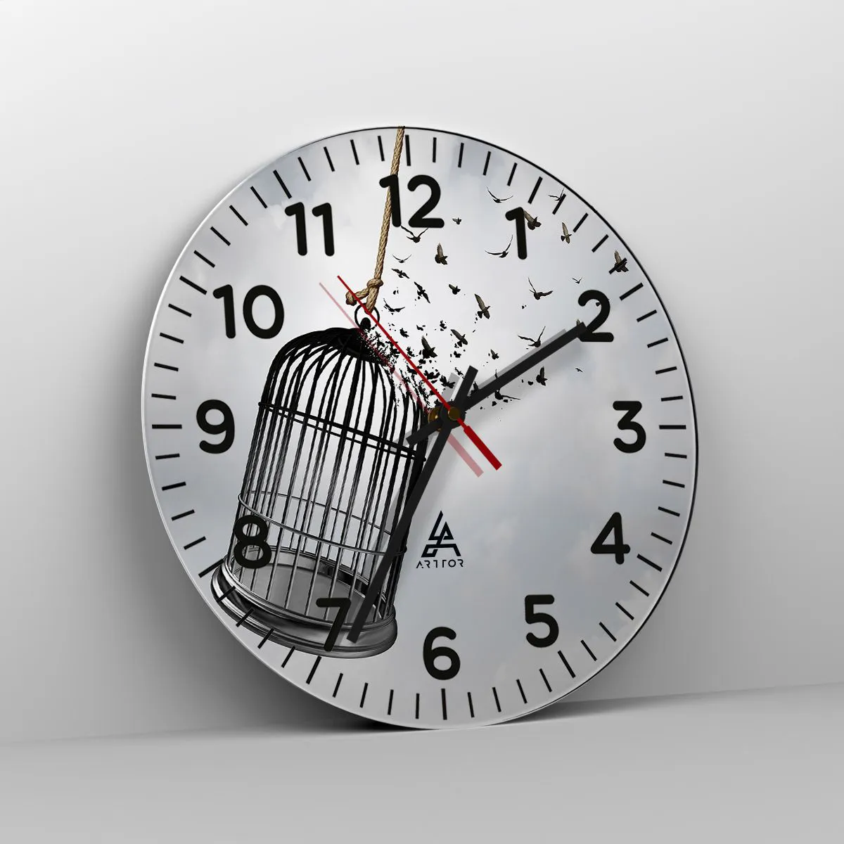 Clock is produced using modern printing technology - this guarantees the preservation of natural colours and high colour saturation. The production of glass clocks is carried out in several stages. A high-quality print and two protective layers are thermally bonded to the glass. We use innovative glass lamination press technology with the vacuum system.