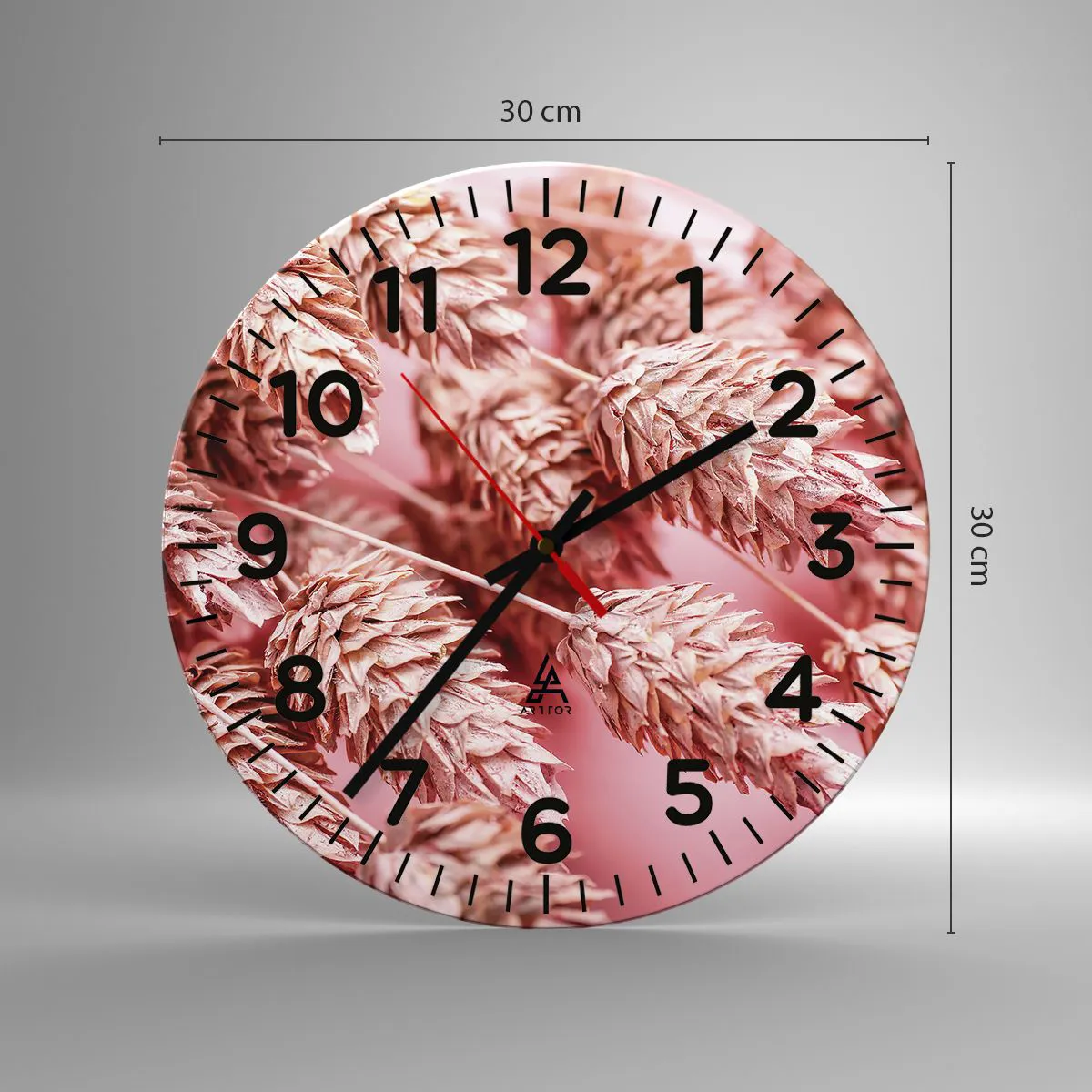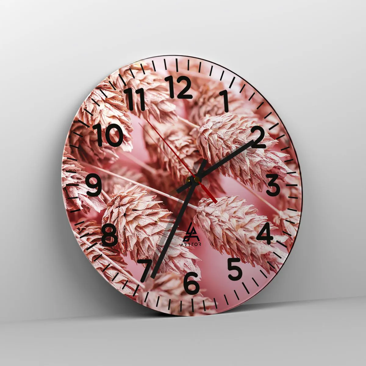 Wall clock - Clock on glass - Flowery Cascade in Pink - 30x30 cm