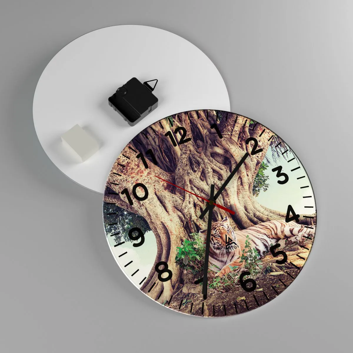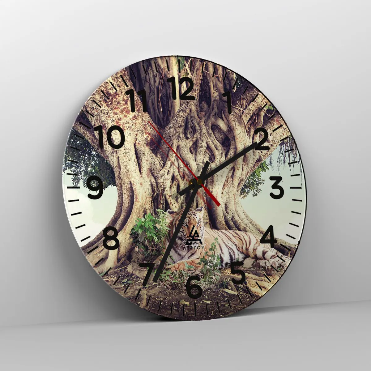 Clock is produced using modern printing technology - this guarantees the preservation of natural colours and high colour saturation. The production of glass clocks is carried out in several stages. A high-quality print and two protective layers are thermally bonded to the glass. We use innovative glass lamination press technology with the vacuum system.
