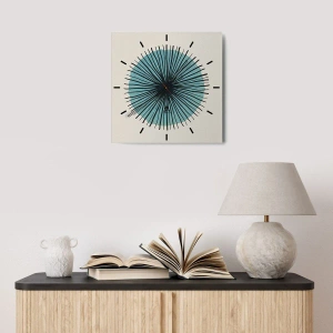 Wall clock - Clock on glass - Rays on Blue - 40x40 cm