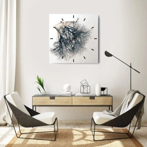 Wall clock - Clock on glass - Artistic silhouette of a woman with a tree crown as hair - 30x30cm - Listening to the Whisper of the Trees - Modern wall decoration for the living room, kitchen, and bedroom ARTTOR