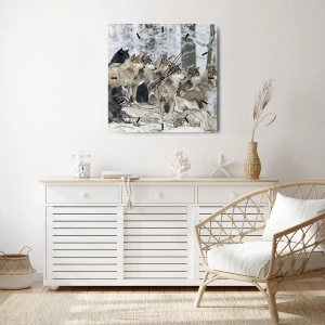 "A Pack of Wolves in a Forest" is an extraordinary wall clock that depicts a picturesque view of a pack of wolves in a winter forest. The scene, captured in a natural setting, shows the majesty of these wild animals against a snowy backdrop, bringing an atmosphere of nature and wilderness to the interior.