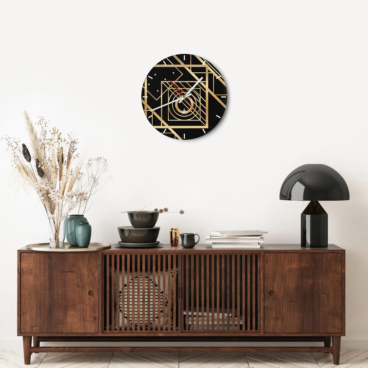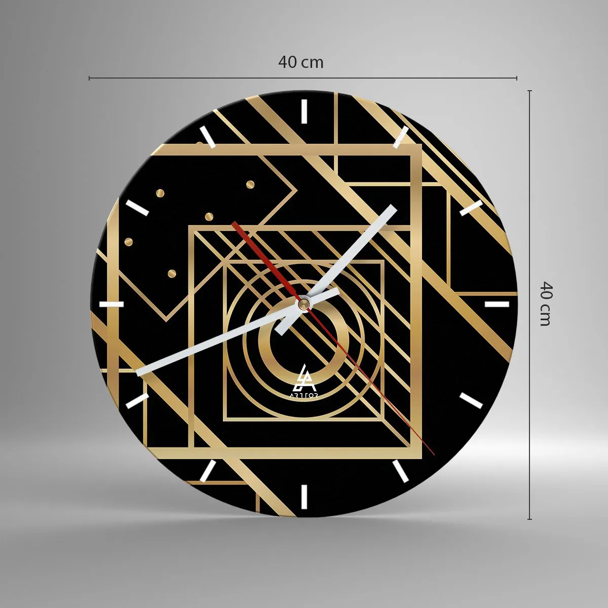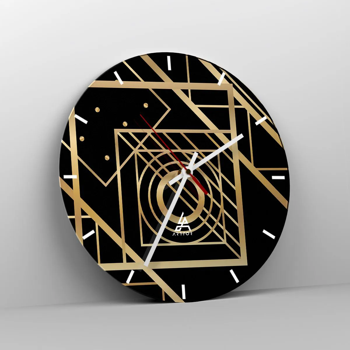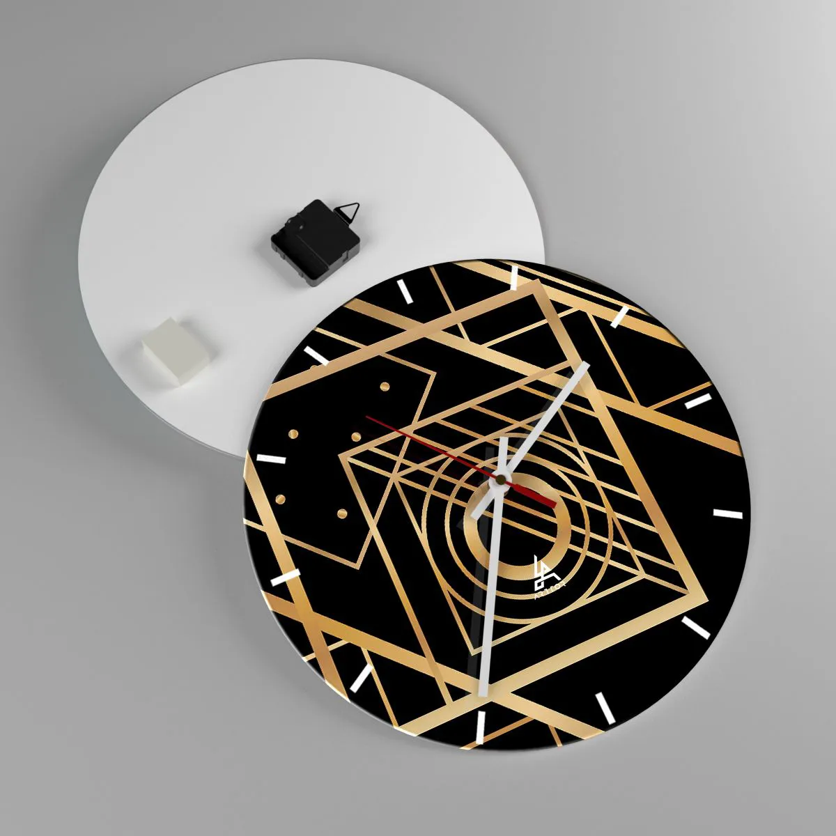 Wall clock - Clock on glass - Golden Geometry - 40x40 cm