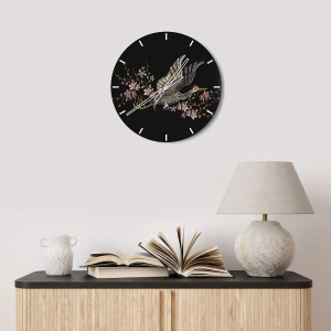Wall clock - Clock on glass - Exotic, Embroidered Bird - 30x30 cm