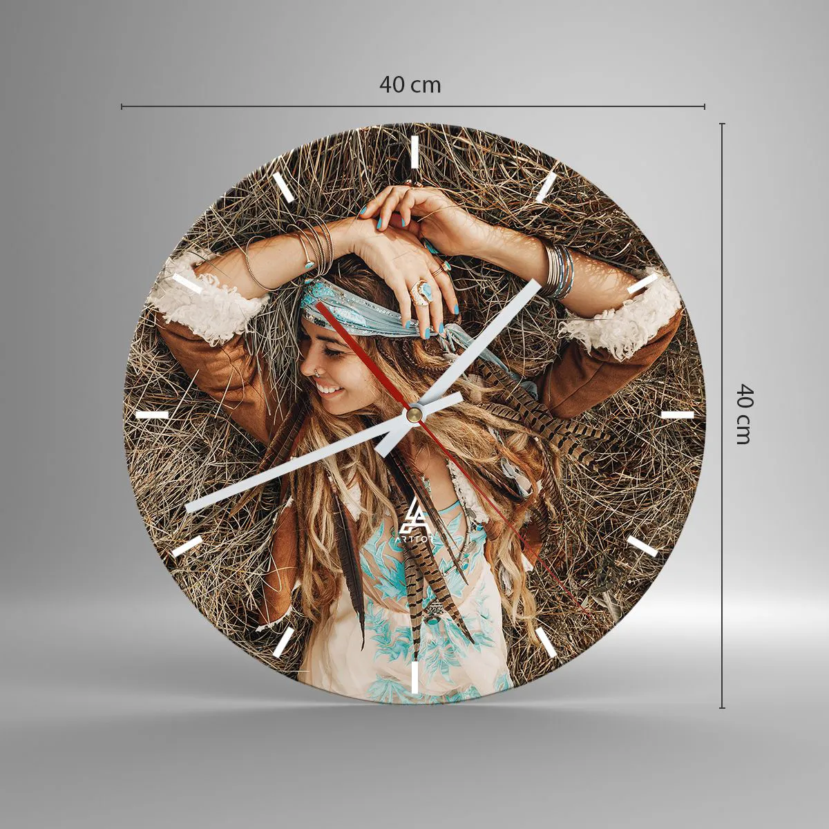 Zegar wykonany jest z wytrzymałego szkła o grubości 4mm. Szkło zachowuje naturalne barwy wydruku