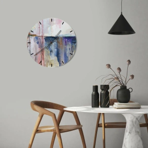 Wall Clock "Colorful Impressions and Associations" takes us into the world of expressive painting, where colors and texture play a major role. Splashes of color in shades of blue, pink, beige, and purple seamlessly intertwine, creating a composition full of impressions, depth, and individual interpretations. This work resembles a fragment of a painting on canvas – dynamic, yet harmonious.