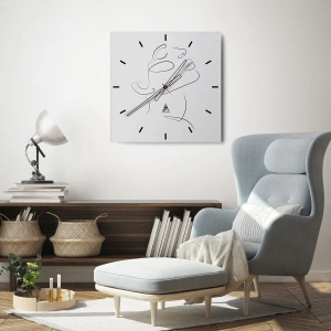 Wall clock - Clock on glass - A minimalist portrait of a woman made with lines on a white background. - 30x30cm - Meanders of a Dream - Modern wall decoration for the living room, kitchen, and bedroom ARTTOR