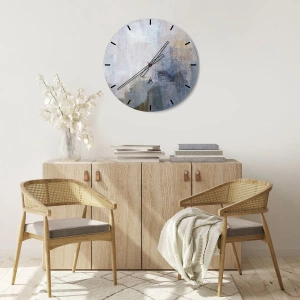 - A wall clock with an abstract composition in shades of blue and gray. Perfect for modern, minimalist, and artistic interiors such as living rooms, offices, or bedrooms. It exudes a delicate and refined aesthetic.