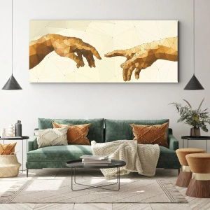 - A painting depicting geometric hands reaching out towards each other against a light background. A modern composition full of symbolism that brings harmony and elegance to any interior.