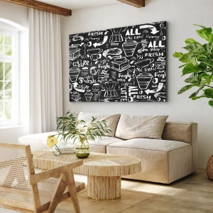 Canvas picture - Stylish coffee graphics on a black background - 70x50cm - All You Need Is… - Modern wall decoration for the living room and bedroom ARTTOR