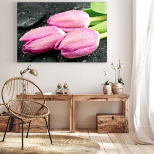 Canvas picture - Three Lilacs on a Black Stone - 80x120 cm