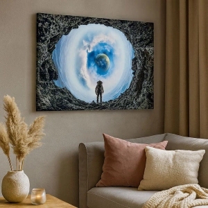 The canvas is stretched over the frame. The sides and edges of the picture are printed to form a continuation of the image. The painting is ready to hang on the wall. Each product comes with a hanger attached to the frame and a mounting kit (screw + wall plug).