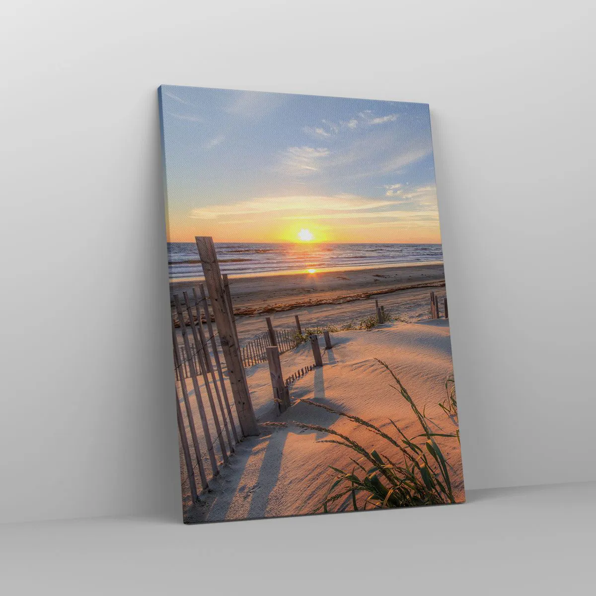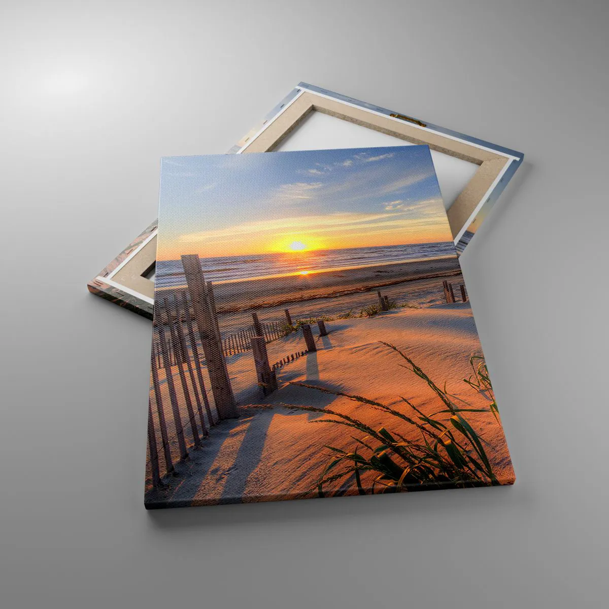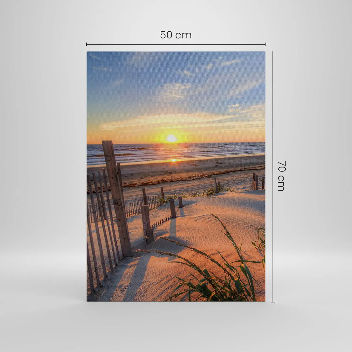 The canvas is stretched over the frame. The sides and edges of the picture are printed to form a continuation of the image. The painting is ready to hang on the wall. Each product comes with a hanger attached to the frame and a mounting kit (screw + wall plug).