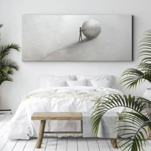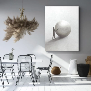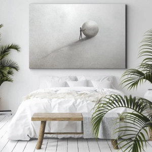 The canvas is stretched over the frame. The sides and edges of the picture are printed to form a continuation of the image. The painting is ready to hang on the wall. Each product comes with a hanger attached to the frame and a mounting kit (screw + wall plug).