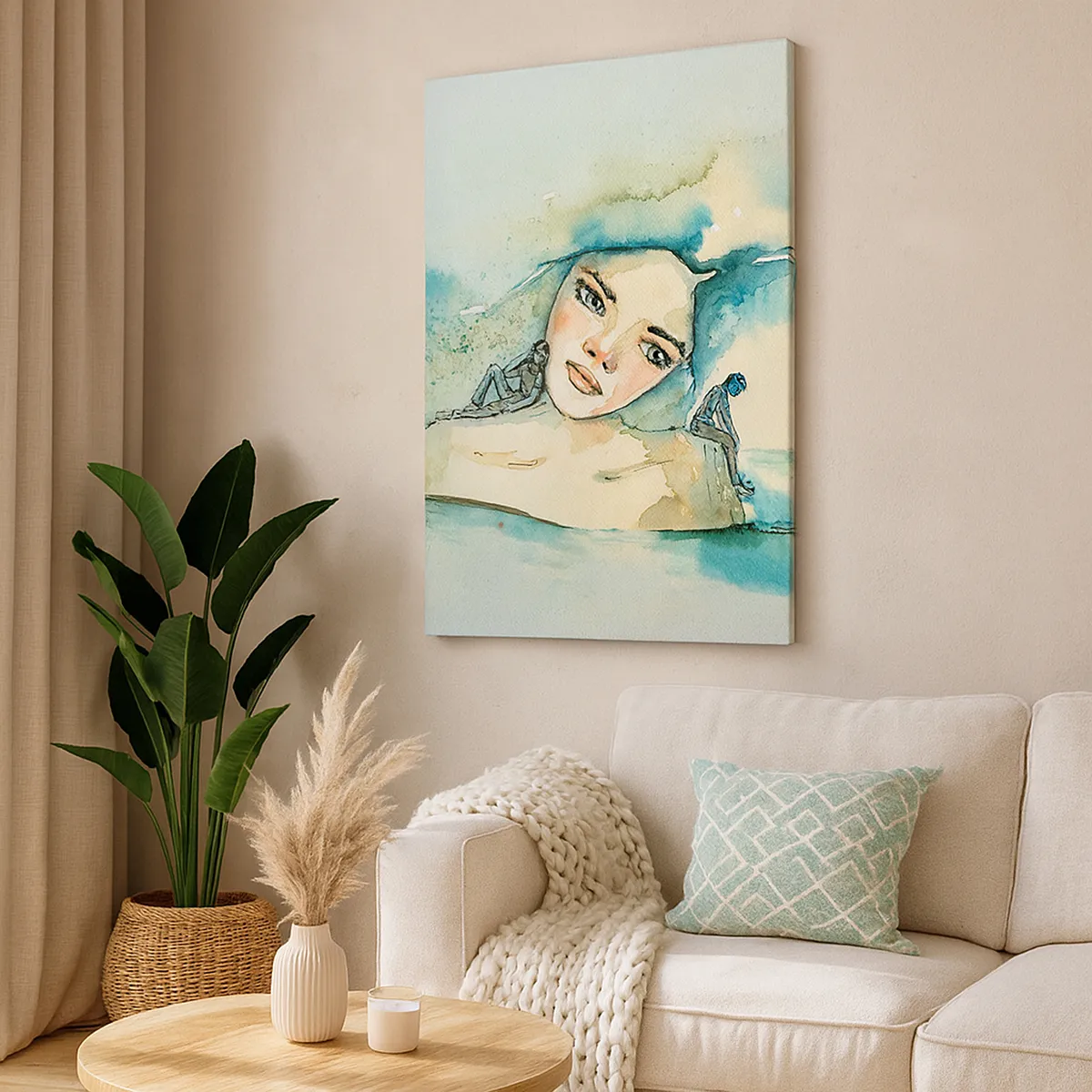 The canvas is stretched over the frame. The sides and edges of the picture are printed to form a continuation of the image. The painting is ready to hang on the wall. Each product comes with a hanger attached to the frame and a mounting kit (screw + wall plug).