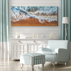 The canvas is stretched over the frame. The sides and edges of the picture are printed to form a continuation of the image. The painting is ready to hang on the wall. Each product comes with a hanger attached to the frame and a mounting kit (screw + wall plug).