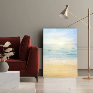 Canvas paintings like this are an excellent choice for those who appreciate peaceful, natural landscapes in their surroundings. Their universal nature makes them suitable for many interior design styles, creating an atmosphere of relaxation and aesthetics. The view of the beach and sea in the painting introduces an element of nature that soothes the senses.